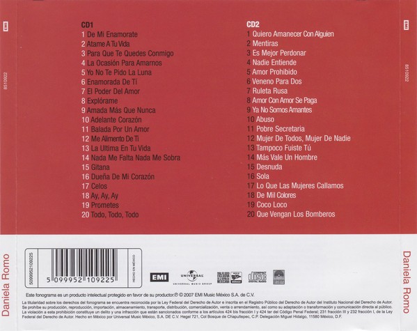 Artista(s) / Grupo: Daniela Romo | Cantidad de Discos: 2 | Lanzamiento: Latin, Pop | Estilo(s): Ballad | Título: 40 Éxitos | Artista(s) / Grupo: Daniela Romo | Cantidad de Discos: 2 | Lanzamiento: Latin, Pop | Estilo(s): Ballad | Título: 40 Éxitos