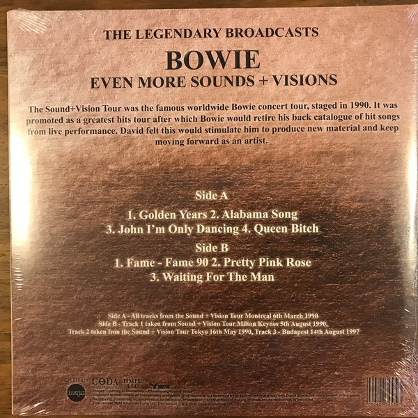 Artista(s) / Grupo: Bowie | Cantidad de Discos: 1 LP 10″ | Lanzamiento: 2020 | Género(s): Rock | Estilo(s): Glam, Pop Rock | TÃtulo: Even More Sounds + Visions – The Legendary Broadcasts | Artista(s) / Grupo: Bowie | Cantidad de Discos: 1 LP 10″ | Lanzamiento: 2020 | Género(s): Rock | Estilo(s): Glam, Pop Rock | TÃtulo: Even More Sounds + Visions – The Legendary Broadcasts