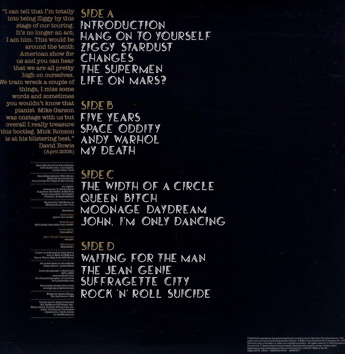 Artista(s) / Grupo: David Bowie | Cantidad de Discos: 2 LP | Estilo(s): Hard Rock, Glam | TÃtulo: Live Santa Monica ’72 | Artista(s) / Grupo: David Bowie | Cantidad de Discos: 2 LP | Estilo(s): Hard Rock, Glam | TÃtulo: Live Santa Monica ’72