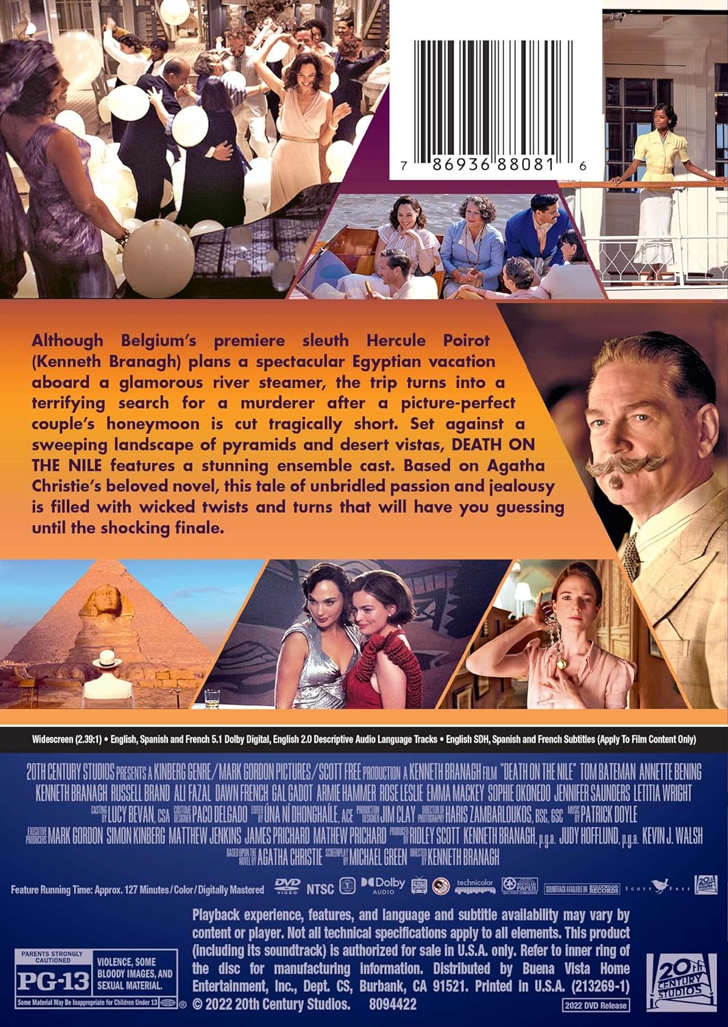 Basada en la novela de Agatha Christie, publicada en 1937. «Muerte en el Nilo» es un thriller de misterio dirigido por Kenneth Branagh sobre el caos emocional y las consecuencias letales que provocan los amores obsesivos. Las vacaciones egipcias del detective belga Hércules Poirot, a bordo de un glamuroso barco de vapor, se ven alteradas por la búsqueda de un asesino cuando la idÃlica luna de miel de una pareja perfecta se ve truncada de la forma más trágica.