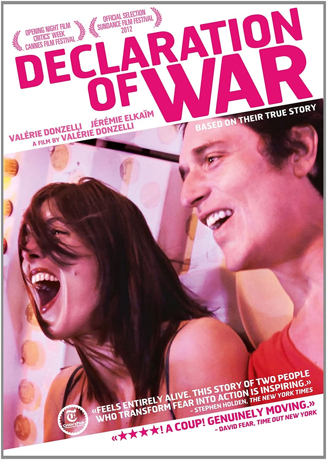 Cantidad de Discos: 1 | Lanzamiento: 2011 | Género(s): Drama | Audio: Inglés, Español | Subtítulos: Español, Inglés | Título: Declaration of War | Director(es): Valérie Donzelli | Reparto: Valérie Donzelli, Jérémie Elkaïm, Gabriel Elkaïm, César Desseix, Brigitte Sy, Elina Löwensohn, Michéle Moretti, Philippe Laudenbach, Bastien Bouillon, Béatrice de Staël, Anne Le Ny, Frédéric Pierrot | Norma / Región: NTSC 1