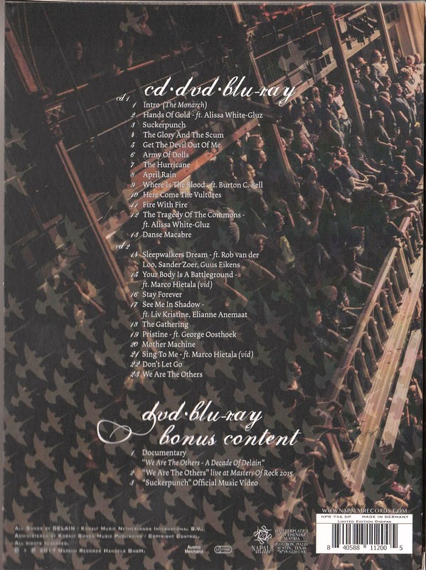 Artista(s) / Grupo: Delain | Cantidad de Discos: 2 CD + 1 DVD + 1 BLURAY | Lanzamiento: 2017 | Género(s): Rock | Estilo(s): Prog Rock, Art Rock, Symphonic Rock | TÃtulo: A Decade Of Delain – Live At Paradiso | Norma / Región: Multizona | Artista(s) / Grupo: Delain | Cantidad de Discos: 2 CD + 1 DVD + 1 BLURAY | Lanzamiento: 2017 | Género(s): Rock | Estilo(s): Prog Rock, Art Rock, Symphonic Rock | TÃtulo: A Decade Of Delain – Live At Paradiso | Norma / Región: Multizona