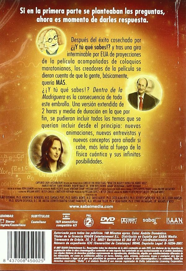 Después del éxito cosechado por “¿¡Y tú qué sabes!?” y tras una gira interminable por Estados Unidos de proyecciones de la película acompañadas de coloquios maratonianos, los creadores de la película se dieron cuenta de que la gente, básicamente, quería más. “¿¡Y tú qué sabes!?: Dentro de la madriguera” es la consecuencia de todo este embrollo. Una versión extendida de 2 horas y media de duración en la que, por fin, se pudieron incluir todos los temas que se querían incluir desde el principio: nuevas animaciones, nuevas entrevistas y nuevos conceptos para añadir si cabe, más leña al fuego de la física cuántica y sus infinitas posibilidades.