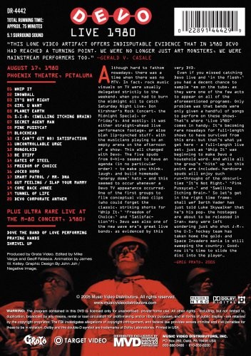 Artista(s) / Grupo: Devo | Cantidad de Discos: 1 | Lanzamiento: 2005 | Género(s): Rock, Pop | Estilo(s): New Wave, Punk | TÃtulo: Live 1980 | Norma / Región: NTSC 1 | Artista(s) / Grupo: Devo | Cantidad de Discos: 1 | Lanzamiento: 2005 | Género(s): Rock, Pop | Estilo(s): New Wave, Punk | TÃtulo: Live 1980 | Norma / Región: NTSC 1