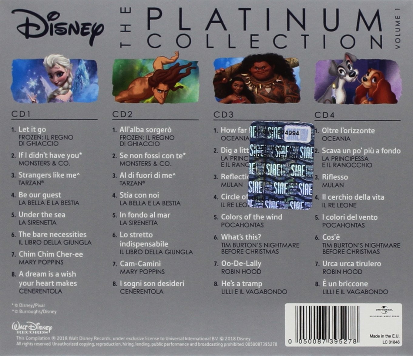 Artista(s) / Grupo: Varios Artistas | Cantidad de Discos: 4 | Lanzamiento: 2018 | Género(s): Children’s, Stage & Screen. | Estilo(s): Soundtrack | TÃtulo: Disney: The Platinum Collection Volume 1 | Series: Disney | Artista(s) / Grupo: Varios Artistas | Cantidad de Discos: 4 | Lanzamiento: 2018 | Género(s): Children’s, Stage & Screen. | Estilo(s): Soundtrack | TÃtulo: Disney: The Platinum Collection Volume 1 | Series: Disney