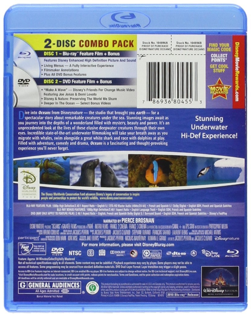 Cantidad de Discos: 1 BLR + 1 DVD | Lanzamiento: 2011 | Género(s): Documental | Audio: Inglés, Francés, Español | Subtítulos: Francés, Español, Inglés | Título: Disneynature: Oceans | Director(es): Jacques Perrin, Jacques Cluzaud | Norma / Región: NTSC (Región A) | Cantidad de Discos: 1 BLR + 1 DVD | Lanzamiento: 2011 | Género(s): Documental | Audio: Inglés, Francés, Español | Subtítulos: Francés, Español, Inglés | Título: Disneynature: Oceans | Director(es): Jacques Perrin, Jacques Cluzaud | Norma / Región: NTSC (Región A)