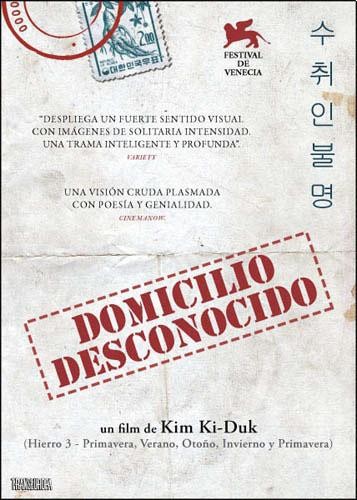 Cantidad de Discos: 1 | Lanzamiento: 2001 | Género(s): Drama | Audio: Inglés, Español | SubtÃtulos: Español, Inglés | TÃtulo: Domicilio desconocido | Director(es): Kim Ki-duk | Reparto: Yang Dong-kun, Min-jung Ban, Kim Yeong-min, Bang Eun-jin, Myeong Gye-nam, In-ok Lee, Cho Jae-yun | Norma / Región: NTSC (Región 1, 4)