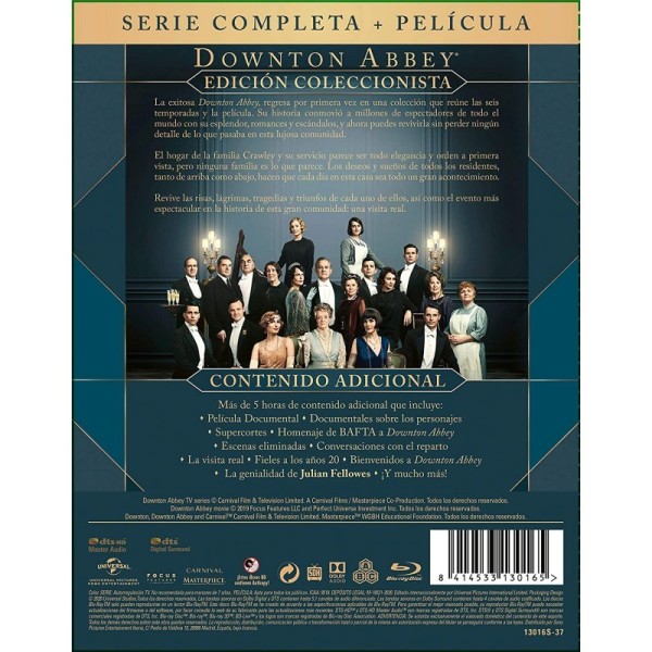 Cantidad de Discos: 21 | Lanzamiento: 2010 | Género(s): Serie de TV, Drama | Audio: Inglés (Dolby Digital 2.0), Español (Dolby Digital 2.0) | SubtÃtulos: Español | TÃtulo: Downton Abbey, Serie completa más la pelÃcula | Director(es): Julian Fellowes (Creador), Brian Percival, David Evans, Philip John, Andy Goddard, Catherine Morshead, Minkie Spiro, Brian Kelly, Michael Engler, Ben Bolt, Ashley Pearce, James Strong, Jeremy Webb, Edward Hall, Jon East