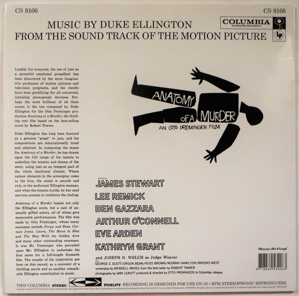 Artista(s) / Grupo: Duke Ellington | Cantidad de Discos: 1 LP | Lanzamiento: 2013 | Género(s): Soundtrack | Estilo(s): Jazz, Stage & Screen | TÃtulo: Otto Preminger’s Anatomy Of A Murder | Artista(s) / Grupo: Duke Ellington | Cantidad de Discos: 1 LP | Lanzamiento: 2013 | Género(s): Soundtrack | Estilo(s): Jazz, Stage & Screen | TÃtulo: Otto Preminger’s Anatomy Of A Murder