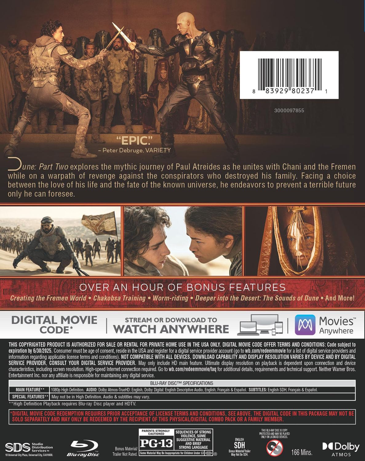 Tras los sucesos de la primera parte acontecidos en el planeta Arrakis, el joven Paul Atreides se une a la tribu de los Fremen y comienza un viaje espiritual y marcial para convertirse en mesÃas, mientras intenta evitar el horrible pero inevitable futuro que ha presenciado: una Guerra Santa en su nombre, que se extiende por todo el universo conocido… Secuela de ‘Dune’ (2021).