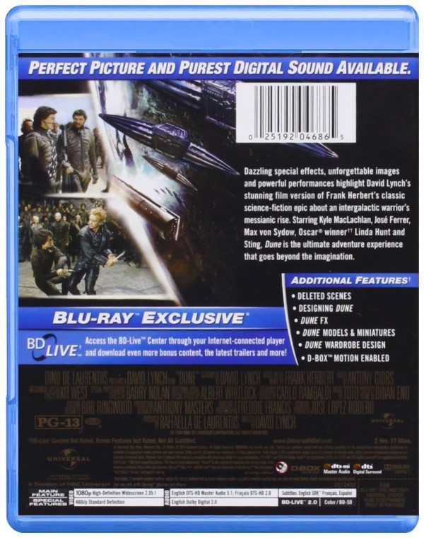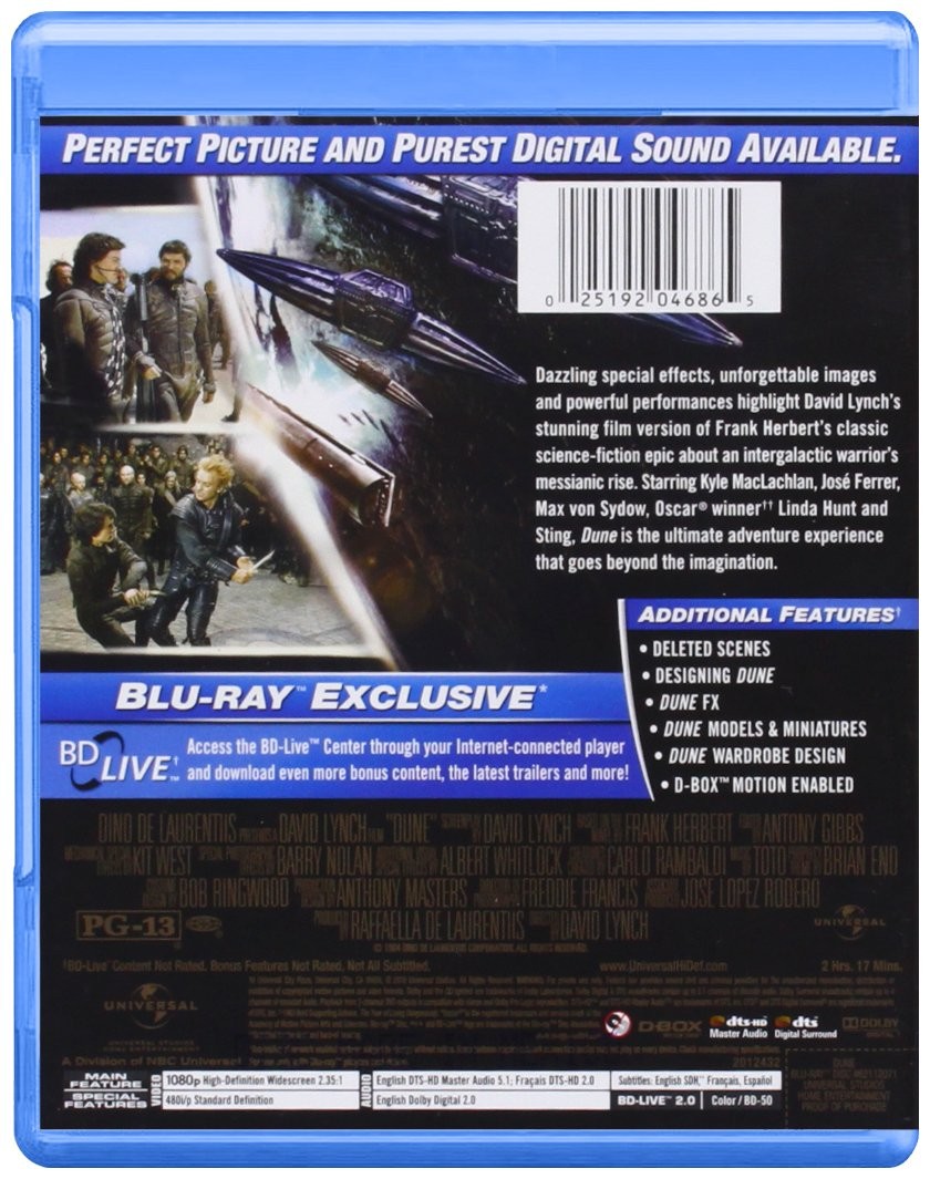 Reparto: Kyle MacLachlan, Francesca Annis, Jürgen Prochnow, Patrick Stewart, Kenneth McMillan, Sting, Max von Sydow, Sean Young, Virginia Madsen, Brad Dourif, Sian Phillips, José Ferrer, Everett McGill, Dean Stockwell, Freddie Jones, Alicia Witt, Richard Jordan, Jack Nance, Linda Hunt, Silvana Mangano, Ernesto Laguardia