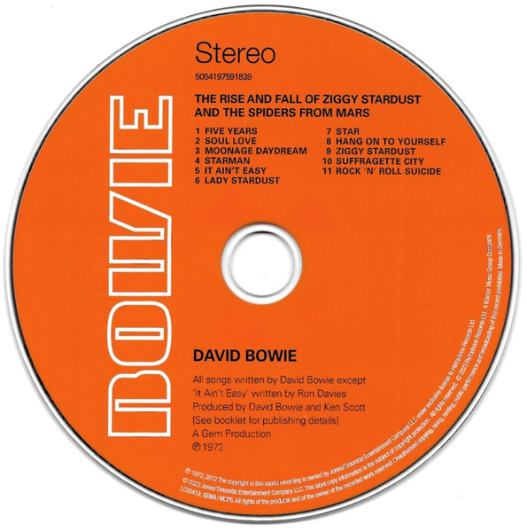DAVID BOWIE – ZIGGY STARDUST AND THE SPIDERS FROM MARS – SOUNDTRACK
