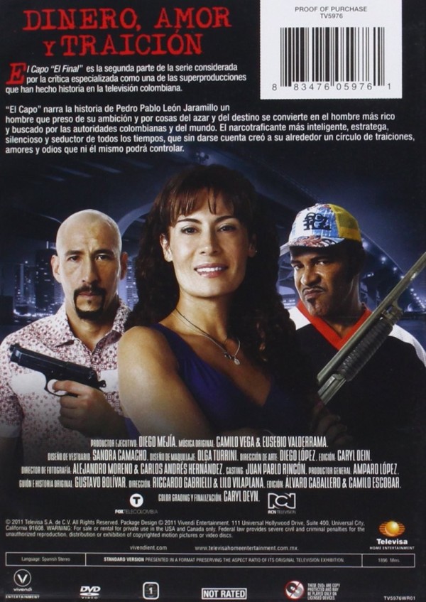 Serie de TV (2009). 74 episodios. Exitosa serie colombiana escrita por Gustavo BolÃvar, acerca de las últimas 24 horas en la vida de un capo de la mafia. Marlon Moreno da vida a Pedro Pablo León Jaramillo «El Capo» y MarÃa Adelaida Puerta interpreta a una sicaria que es su escolta. Isabel MarÃn (Katherine Vélez) es su esposa. El Capo es un hombre de 48 años, inteligente y muy sagaz que después de empezar cometiendo pequeños delitos, termina convirtiéndose en uno de los narcotraficantes más peligrosos del paÃs.