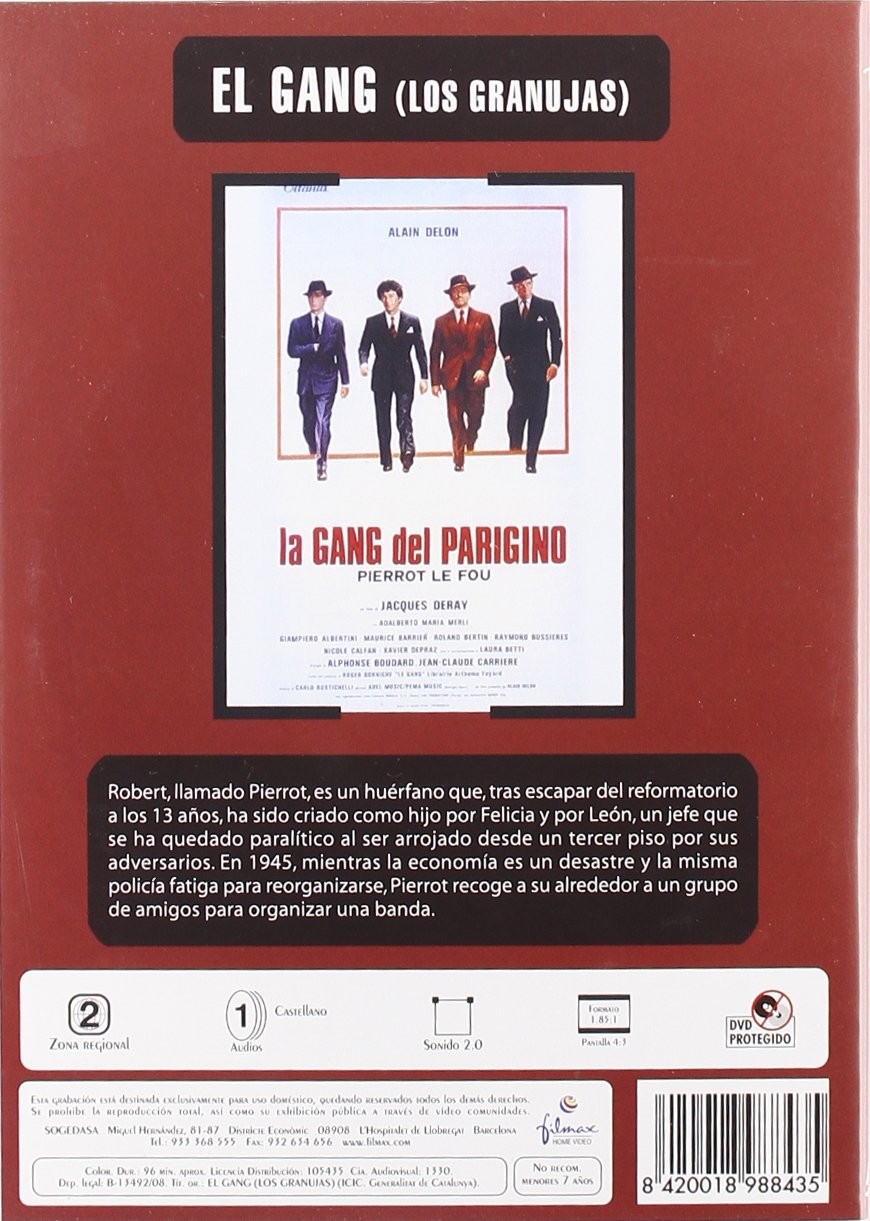 Cantidad de Discos: 1 | Lanzamiento: 2008 | Género(s): Acción, Aventura, Espionaje | Audio: Español (Dolby Digital 2,0) | TÃtulo: El Gang – Los Granujas | Director(es): Jacques Deray | Reparto: Robert ‘Le Dingue’: Alain Delon, Jo: Xavier Depraz, Raymond: Roland Bertin, Manu: Adalberto maria Merli, Lucien ‘Le Mammouth’: Maurice Barrier | Norma / Región: PAL (Región 2) | Cantidad de Discos: 1 | Lanzamiento: 2008 | Género(s): Acción, Aventura, Espionaje | Audio: Español (Dolby Digital 2,0) | TÃtulo: El Gang – Los Granujas | Director(es): Jacques Deray | Reparto: Robert ‘Le Dingue’: Alain Delon, Jo: Xavier Depraz, Raymond: Roland Bertin, Manu: Adalberto maria Merli, Lucien ‘Le Mammouth’: Maurice Barrier | Norma / Región: PAL (Región 2)