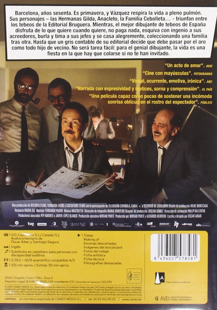 Barcelona, años sesenta. Es primavera, y Vázquez respira la vida a pleno pulmón. Sus personajes ―las Hermanas Gilda, Anacleto, la Familia Cebolleta― triunfan entre los tebeos de la Editorial Bruguera. Mientras, el mejor dibujante de tebeos de España disfruta de lo que quiere cuando quiere, no paga nada, esquiva con ingenio a sus acreedores, burla y tima a sus jefes y se casa alegremente, coleccionando una familia tras otra. Hasta que un gris contable de su editorial decide que debe pasar por el aro como todo hijo de vecino. No será tarea fácil: para el genial dibujante, la vida es una fiesta en la que hay que colarse si no te han invitado.