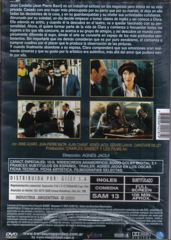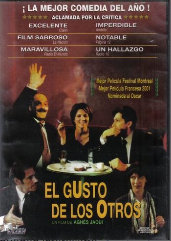Cantidad de Discos: 1 | Lanzamiento: 2000 | Género(s): Comedia | Audio: Francés | SubtÃtulos: Español, Inglés | TÃtulo: Le gout des autres | Director(es): Agnes Jaoui | Reparto: Anne Alvaro, Jean Pierre Bacri, Agnes Jaoui, Gerard Lanvin | Norma / Región: NTSC (Región 1, 4) | Cantidad de Discos: 1 | Lanzamiento: 2000 | Género(s): Comedia | Audio: Francés | SubtÃtulos: Español, Inglés | TÃtulo: Le gout des autres | Director(es): Agnes Jaoui | Reparto: Anne Alvaro, Jean Pierre Bacri, Agnes Jaoui, Gerard Lanvin | Norma / Región: NTSC (Región 1, 4)
