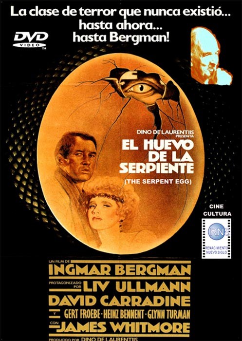Cantidad de Discos: 1 | Lanzamiento: 2012 | Género(s): Drama. Intriga | Audio: Inglés (Dolby Digital 2,0 Stereo) | SubtÃtulos: Español | TÃtulo: Das Schlangenei o The Serpent’s Egg (1977) | Director(es): Ingmar Bergman | Reparto: David Carradine, Liv Ullmann, Gert Fröbe, Heinz Bennent, James Whitmore, Glynn Turman, Gunther Malzacher, Walter Schmidinger, Charles Régnier, Isolde Barth, Edith Heerdegen, Kyra Mladeck, Irene Steinbeisser | Norma / Región: Multizona