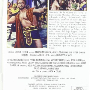 Volviendo a la Guerra de Troya, el barco donde Menéalo y Helena vuelven a Esparta naufraga. Sobreviven la bella Helena y su protector, el invencible guerrero Arión, que consiguen llegar hasta la costa de Egipto, que en aquel momento está al borde de la guerra civil entre Ramsés, que gobierna en Tebas, y Menofis, señor del Bajo Egipto. Sólo la fuerza sobrehumana de Arión conseguirá vencer las intrigas de Tutmés, el taimado consejero de Ramsés, y del reaparecido Menéalo, que demuestra mucho más interés en hacerse con el tesoro de los faraones que en recuperar a su mujer..