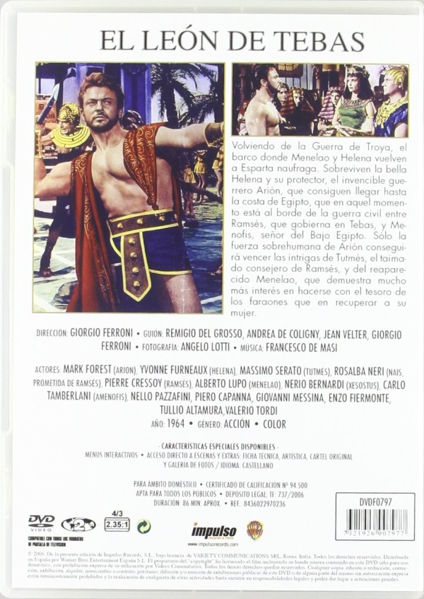 Reparto: Mark Forest, Yvonne Furneaux, Massimo Serato, Pierre Cressoy, Alberto Lupo, Rosalba Neri, Carlo Tamberlani, Tullio Altamura, Nerio Bernardi, Pietro Capanna, Enzo Fiermonte