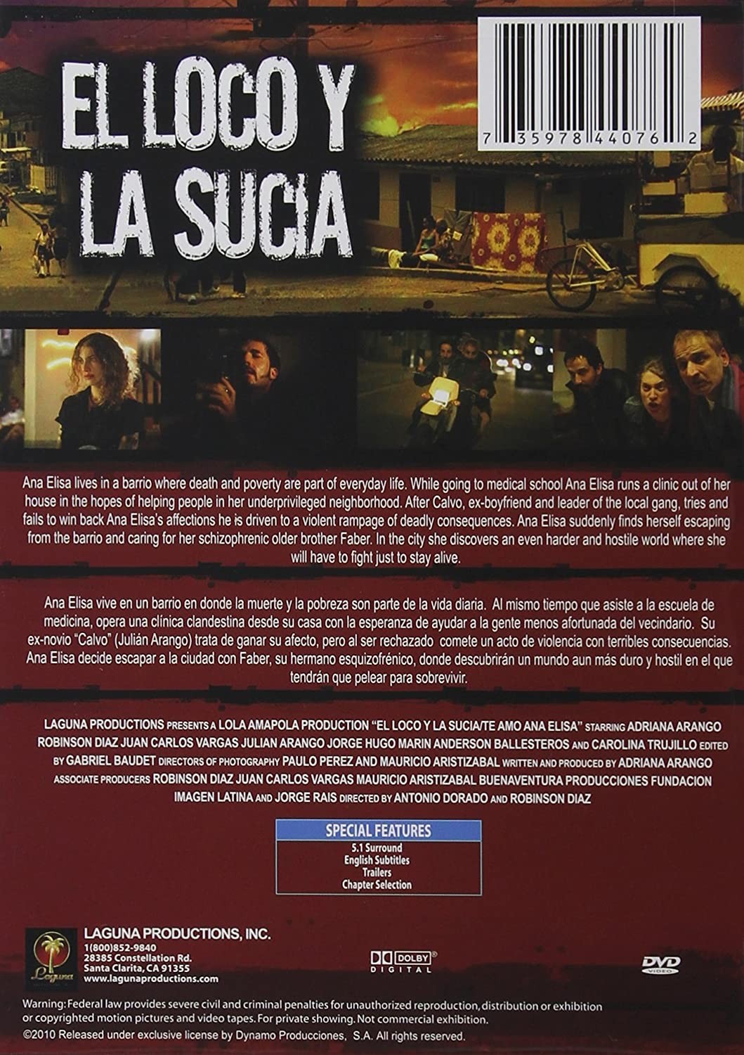 Cantidad de Discos: 1 | Lanzamiento: 2008 | Género(s): Comedia | Audio: Inglés, Español | Subtítulos: Español, Inglés | Título: El Loco Y La Sucia | Director(es): Robinson Díaz, José Antonio Dorado | Reparto: Robinson Díaz, Adriana Arango, Julián Arango, Juan Carlos Vargas, Anderson Ballesteros, Fernando Arévalo, César Badillo, Fernando Solórzano, Gustavo Angarita, María Cecilia Sánchez, Marcela Valencia, Constanza Duque, Carolina Trujillo, Manuel José Chaves | Norma / Región: NTSC 1 | Cantidad de Discos: 1 | Lanzamiento: 2008 | Género(s): Comedia | Audio: Inglés, Español | Subtítulos: Español, Inglés | Título: El Loco Y La Sucia | Director(es): Robinson Díaz, José Antonio Dorado | Reparto: Robinson Díaz, Adriana Arango, Julián Arango, Juan Carlos Vargas, Anderson Ballesteros, Fernando Arévalo, César Badillo, Fernando Solórzano, Gustavo Angarita, María Cecilia Sánchez, Marcela Valencia, Constanza Duque, Carolina Trujillo, Manuel José Chaves | Norma / Región: NTSC 1