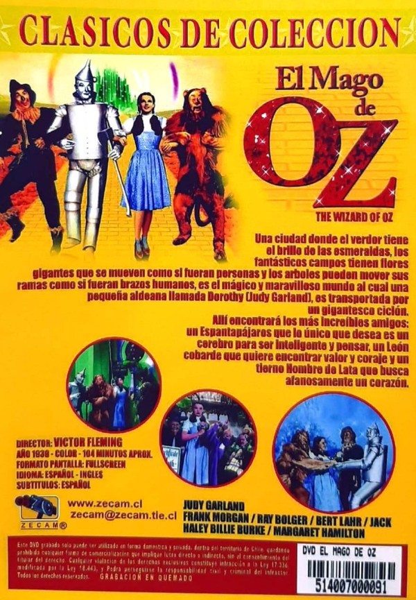 Reparto: Judy Garland, Frank Morgan, Ray Bolger, Bert Lahr, Jack Haley, Billie Burke, Clara Blandick, Margaret Hamilton, Charley Grapewin