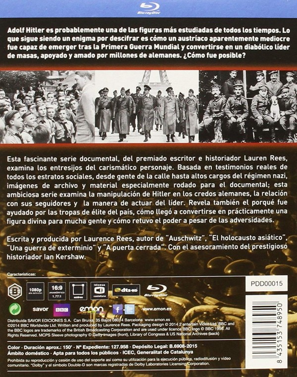 Adolf Hitler es probablemente una de las figuras más estudiadas de todos los tiempos. Lo que sigue siendo un enigma por descifrar es cómo un austrÃaco aparentemente mediocre fue capaz de emerger tras la Primera Guerra Mundial y convertirse en un diabólico lÃder de masas, apoyado y amado por millones de alemanes. ¿Cómo fue posible? Esta fascinante serie documental, del premiado escritor e historiador Lauren Rees, examina los entresijos del carismático personaje. Basada en testimonios reales de todos los estratos sociales, desde gente de la calle hasta altos cargos del régimen nazi, imágenes de archivo y material especialmente rodado para el documental; esta ambiciosa serie examina la manipulación de Hitler en los credos alemanes, la relación con sus seguidores y la manera de actuar del lÃder. Revela también el porqué fue ayudado por las tropas de élite del paÃs, cómo llegó a convertirse en prácticamente una figura divina para mucha gente y cómo retuvo el poder a pesar de las adversidades. Escrita y producida por Laurence Rees, autor de Auschwitz , El holocausto asiático , Una guerra de exterminio y A puerta cerrada . Con el asesoramiento del prestigioso historiador Ian Kershaw.…