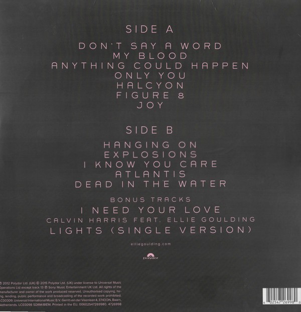 Artista(s) / Grupo: Ellie Goulding | Cantidad de Discos: 1 LP | Lanzamiento: 2015 | Género(s): Pop | Título: Halcyon | Artista(s) / Grupo: Ellie Goulding | Cantidad de Discos: 1 LP | Lanzamiento: 2015 | Género(s): Pop | Título: Halcyon
