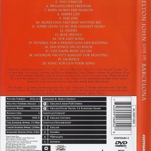 Artista(s) / Grupo: Elton John | Cantidad de Discos: 1 | Género(s): Rock, Pop | Estilo(s): Ballad, Classic Rock, Pop Rock | Título: Live in Barcelona | Artista(s) / Grupo: Elton John | Cantidad de Discos: 1 | Género(s): Rock, Pop | Estilo(s): Ballad, Classic Rock, Pop Rock | Título: Live in Barcelona