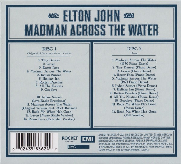 Artista(s) / Grupo: Elton John | Cantidad de Discos: 2 | Lanzamiento: 2022 | Género(s): Pop Rock | TÃtulo: Madman Across The Water | Artista(s) / Grupo: Elton John | Cantidad de Discos: 2 | Lanzamiento: 2022 | Género(s): Pop Rock | TÃtulo: Madman Across The Water