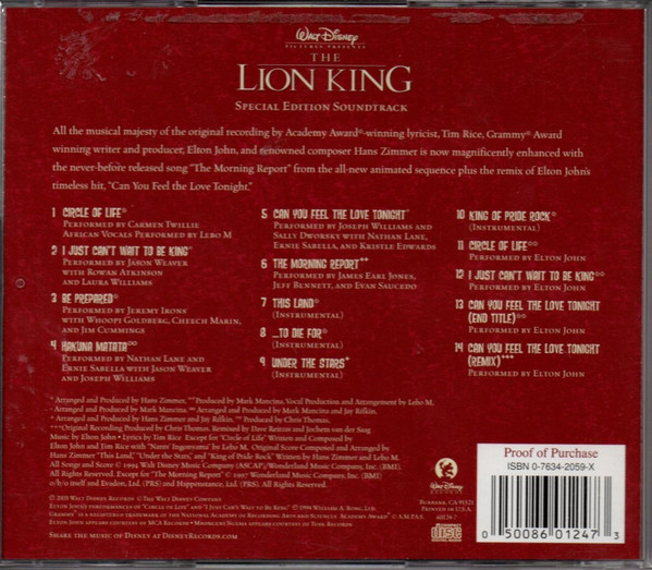 ELTON JOHN / TIM RICE / HANS ZIMMER – THE LION KING – SOUNDTRACK