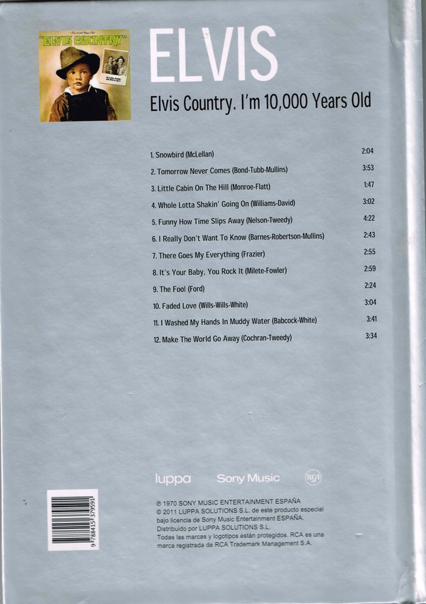 Artista(s) / Grupo: Elvis Presley | Cantidad de Discos: 1 CD + 1 LIBRO | Lanzamiento: 2011 | Género(s): Rock, Folk, World, & Country | Estilo(s): Country Rock, Country | TÃtulo: Elvis Country (I’m 10,000 Years Old) | Artista(s) / Grupo: Elvis Presley | Cantidad de Discos: 1 CD + 1 LIBRO | Lanzamiento: 2011 | Género(s): Rock, Folk, World, & Country | Estilo(s): Country Rock, Country | TÃtulo: Elvis Country (I’m 10,000 Years Old)