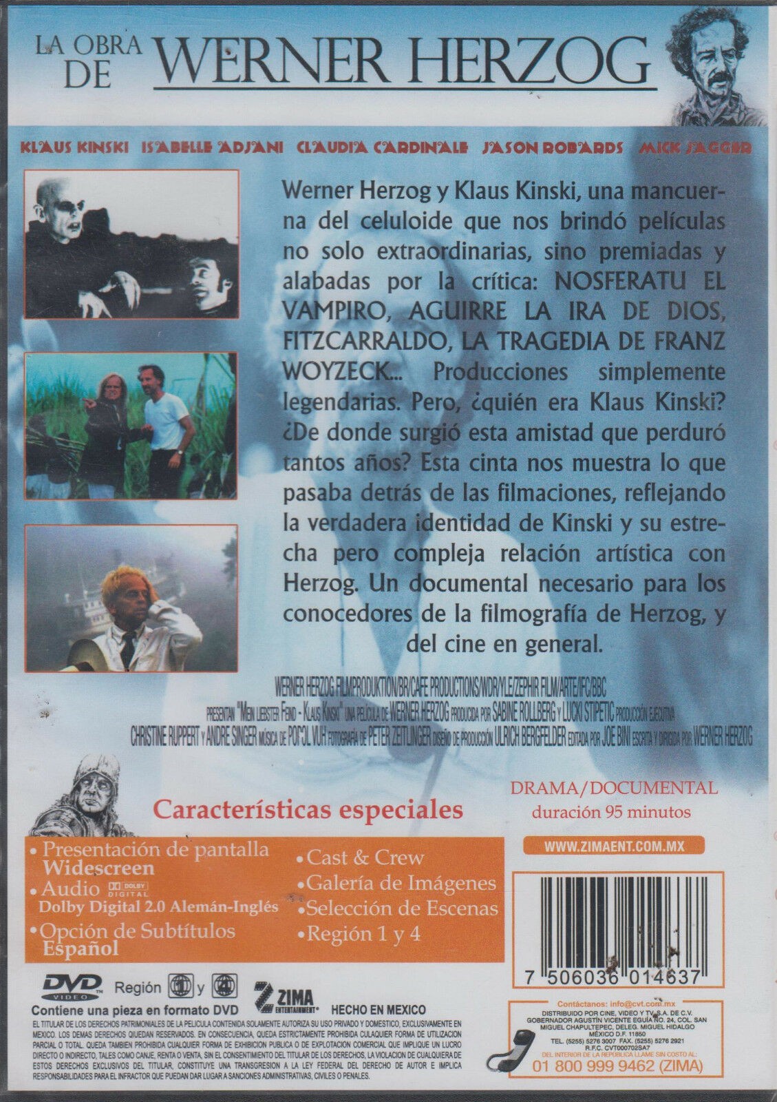 Cantidad de Discos: 1 | Género(s): Documental | Audio: Inglés, Alemán | SubtÃtulos: Español | TÃtulo: Mein liebster Feind (My Dearest Enemy) | Director(es): Werner Herzog | Reparto: Klaus Kinski, Claudia Cardinale, Werner Herzog, Eva Mattes, Beat Presser | Norma / Región: NTSC 1/4 | Cantidad de Discos: 1 | Género(s): Documental | Audio: Inglés, Alemán | SubtÃtulos: Español | TÃtulo: Mein liebster Feind (My Dearest Enemy) | Director(es): Werner Herzog | Reparto: Klaus Kinski, Claudia Cardinale, Werner Herzog, Eva Mattes, Beat Presser | Norma / Región: NTSC 1/4