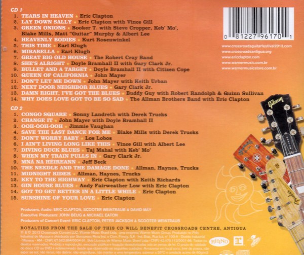 | TÃtulo: Crossroads Guitar Festival 2013 | Artista(s) / Grupo: Eric Clapton | Cantidad de Discos: 1 | Lanzamiento: 2013 | Género(s): Rock, Blues | Estilo(s): Acoustic, Blues Rock, Electric Blues, Modern Electric Blues
