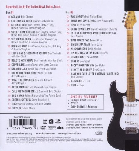 Artista(s) / Grupo: Eric Clapton | Cantidad de Discos: 2 | Género(s): Rock | Estilo(s): Blues Rock, Classic Rock | Audio: Inglés (DTS-HD MA 5.1) | TÃtulo: Crossroads Guitar Festival 2004 | Director(es): David Horn | Reparto: Eric Clapton, Buddy Guy, Robert Cray, ZZ-TOP | Norma / Región: NTSC 1 | Artista(s) / Grupo: Eric Clapton | Cantidad de Discos: 2 | Género(s): Rock | Estilo(s): Blues Rock, Classic Rock | Audio: Inglés (DTS-HD MA 5.1) | TÃtulo: Crossroads Guitar Festival 2004 | Director(es): David Horn | Reparto: Eric Clapton, Buddy Guy, Robert Cray, ZZ-TOP | Norma / Región: NTSC 1