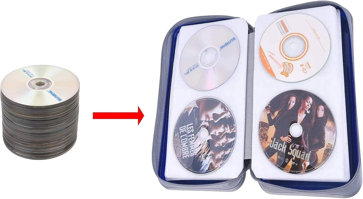 • Fácil de transportar: la funda de almacenamiento de DVD puede contener 80 CD o DVD de capacidad. Te ayuda a ahorrar mucho espacio en tu sala de estar. Cuando estás de negocios o de viaje, también se puede colocar en la guantera del automóvil o en la maleta.