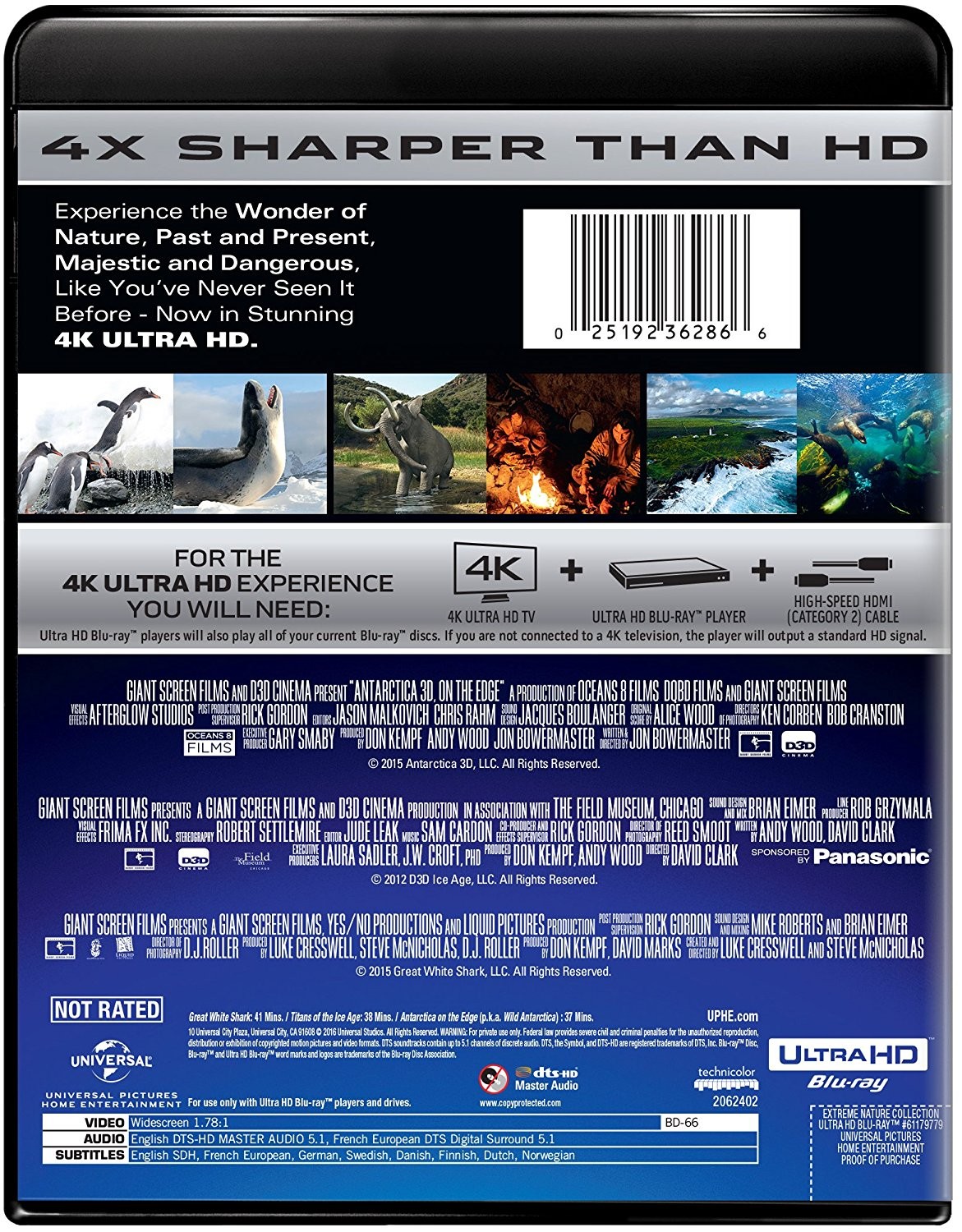 Cantidad de Discos: BLR | Lanzamiento: 2016 | Género(s): Documental | Audio: Inglés (DTS-HD Master Audio 5.1) | SubtÃtulos: Inglés, Español, Francés | TÃtulo: Extreme Nature Collection (4K Ultra HD + Blu-ray + UltraViolet) | Director(es): Jon Bowermaster, David Clark, Luke Cresswell, Steve McNicholas | Sub-CategorÃas: Geográfico | Norma / Región: NTSC (Región A) | Cantidad de Discos: BLR | Lanzamiento: 2016 | Género(s): Documental | Audio: Inglés (DTS-HD Master Audio 5.1) | SubtÃtulos: Inglés, Español, Francés | TÃtulo: Extreme Nature Collection (4K Ultra HD + Blu-ray + UltraViolet) | Director(es): Jon Bowermaster, David Clark, Luke Cresswell, Steve McNicholas | Sub-CategorÃas: Geográfico | Norma / Región: NTSC (Región A)