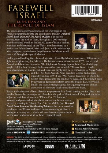 Cantidad de Discos: 1 | Lanzamiento: 2007 | Género(s): Documental | Audio: Inglés | SubtÃtulos: Sin Subtitulos | TÃtulo: Farewell Israel: Bush, Iran, and The Revolt of Islam | Director(es): Joel Gilbert | Norma / Región: Multizona | Cantidad de Discos: 1 | Lanzamiento: 2007 | Género(s): Documental | Audio: Inglés | SubtÃtulos: Sin Subtitulos | TÃtulo: Farewell Israel: Bush, Iran, and The Revolt of Islam | Director(es): Joel Gilbert | Norma / Región: Multizona