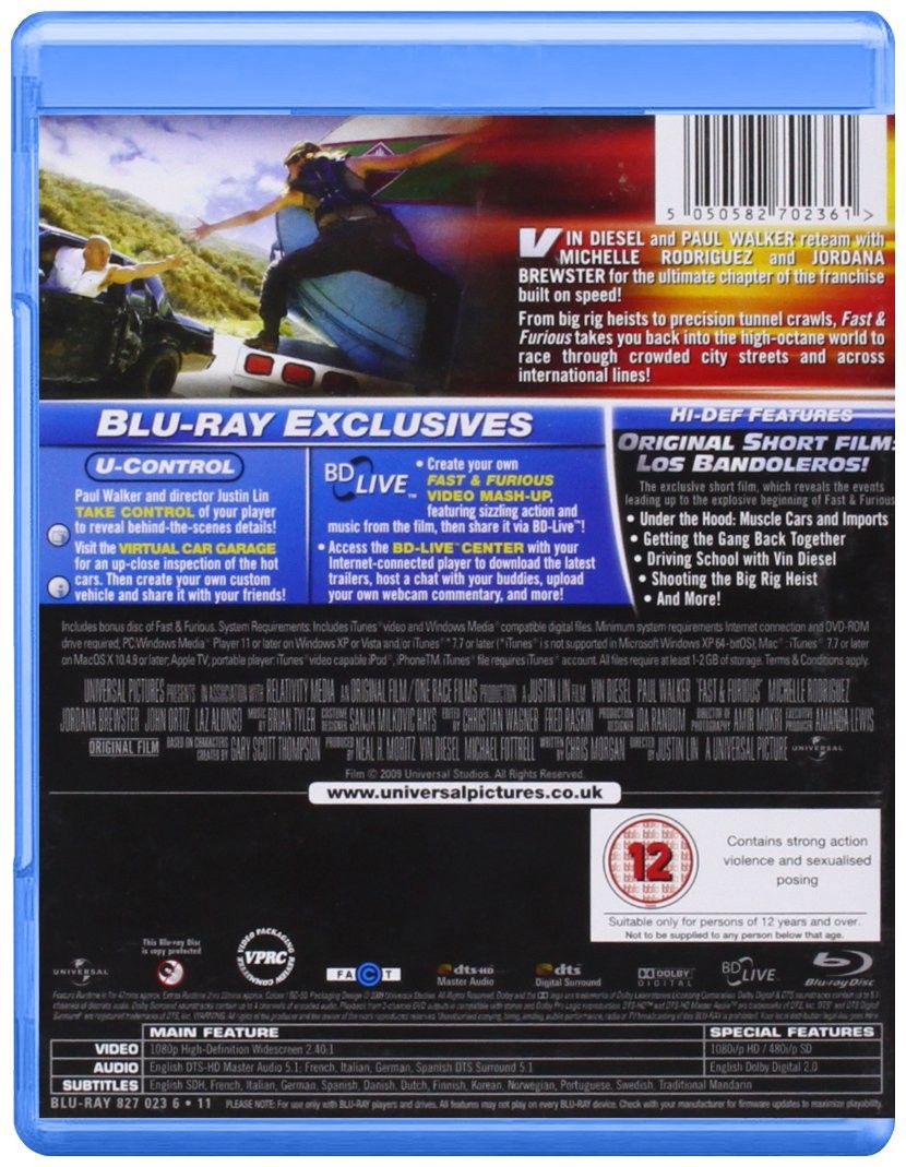 Cantidad de Discos: 1 | Lanzamiento: 2009 | Género(s): Acción | Audio: Inglés, Francés, Español | Subtítulos: Francés, Español, Inglés | Título: Fast and Furious 4 | Director(es): Justin Lin | Reparto: Vin Diesel, Paul Walker, Michelle Rodriguez, Jordana Brewster, Sung Kang, John Ortiz, Laz Alonso, Gal Gadot, Tego Calderón, Don Omar, Mirtha Michelle, Greg Cipes, Liza Lapira, Jack Conley, Frank Miranda, Ron Yuan, Greg Collins | Norma / Región: NTSC (Región A) | Cantidad de Discos: 1 | Lanzamiento: 2009 | Género(s): Acción | Audio: Inglés, Francés, Español | Subtítulos: Francés, Español, Inglés | Título: Fast and Furious 4 | Director(es): Justin Lin | Reparto: Vin Diesel, Paul Walker, Michelle Rodriguez, Jordana Brewster, Sung Kang, John Ortiz, Laz Alonso, Gal Gadot, Tego Calderón, Don Omar, Mirtha Michelle, Greg Cipes, Liza Lapira, Jack Conley, Frank Miranda, Ron Yuan, Greg Collins | Norma / Región: NTSC (Región A)
