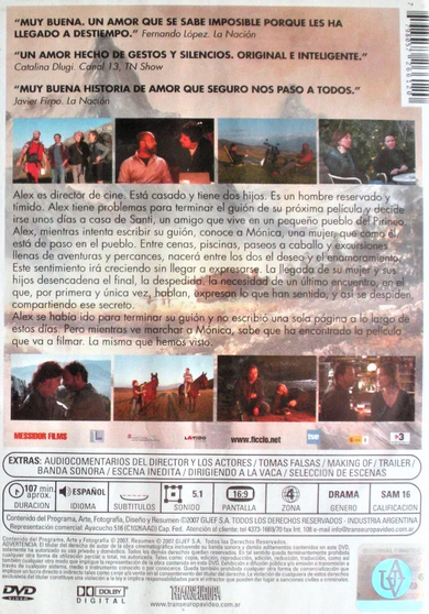 Cantidad de Discos: 1 | Lanzamiento: 2006 | Género(s): Drama, Romance | Audio: Español | Título: Ficción | Director(es): Cesc Gay | Reparto: Eduard Fernández, Javier Cámara, Montse Germán, Carme Pla, Àgata Roca, Greta Fernández, Sol Caramilloni, Pau Rangel