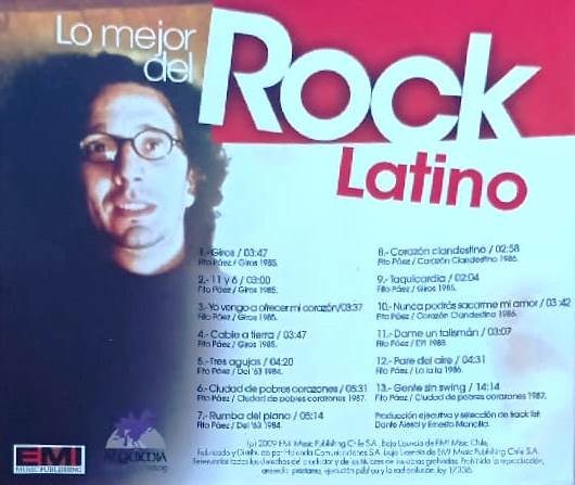 Artista(s) / Grupo: Fito Páez | Cantidad de Discos: 1 | Lanzamiento: 2009 | Género(s): Rock, Pop | Estilo(s): Rock Latino | Título: Lo Mejor del Rock Latino | Norma / Región: NTSC (Región 1, 4) | Artista(s) / Grupo: Fito Páez | Cantidad de Discos: 1 | Lanzamiento: 2009 | Género(s): Rock, Pop | Estilo(s): Rock Latino | Título: Lo Mejor del Rock Latino | Norma / Región: NTSC (Región 1, 4)