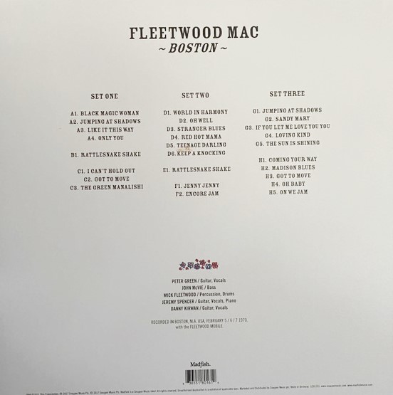 Artista(s) / Grupo: Fleetwood Mac | Cantidad de Discos: 4 LP + Libro | Lanzamiento: 2017 | Género(s): Rock, Blues | Estilo(s): Blues Rock, Chicago Blues | TÃtulo: Boston | Artista(s) / Grupo: Fleetwood Mac | Cantidad de Discos: 4 LP + Libro | Lanzamiento: 2017 | Género(s): Rock, Blues | Estilo(s): Blues Rock, Chicago Blues | TÃtulo: Boston
