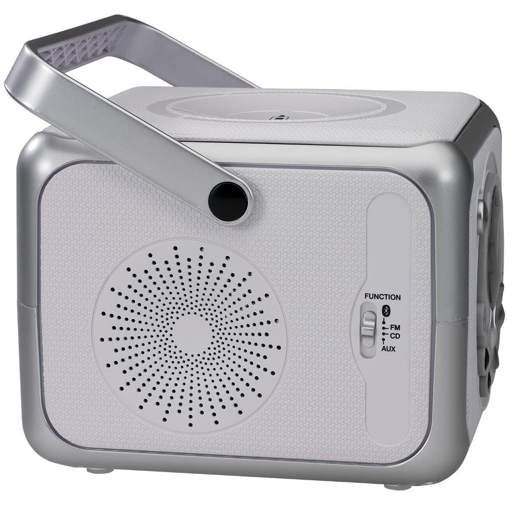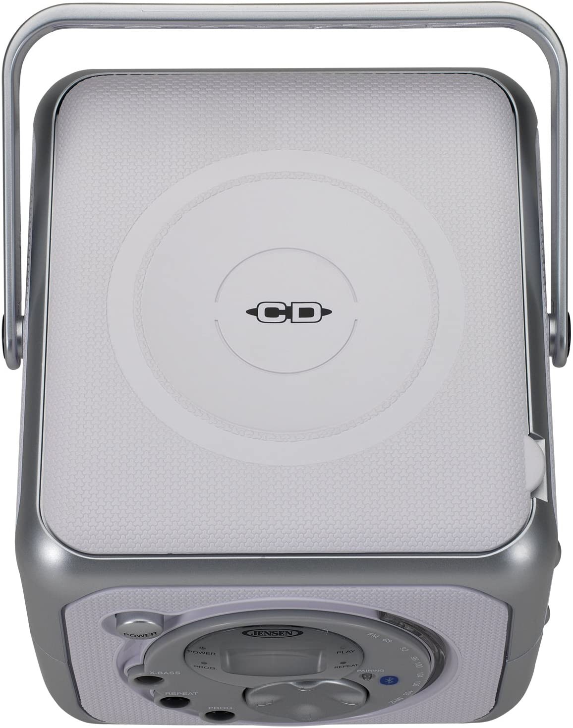 Jensen FM Stereo CD555 Bluetooth Boombox, Silver, 7.00 x 9.75 x 6.00 inches