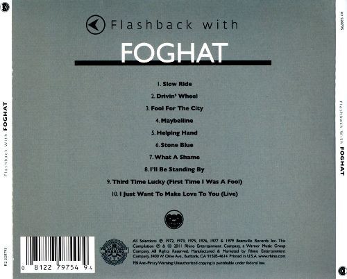 Artista(s) / Grupo: Foghat | Cantidad de Discos: 1 | Lanzamiento: 2011 | Género(s): Rock | Estilo(s): Arena Rock | TÃtulo: Flashback With Foghat | Artista(s) / Grupo: Foghat | Cantidad de Discos: 1 | Lanzamiento: 2011 | Género(s): Rock | Estilo(s): Arena Rock | TÃtulo: Flashback With Foghat