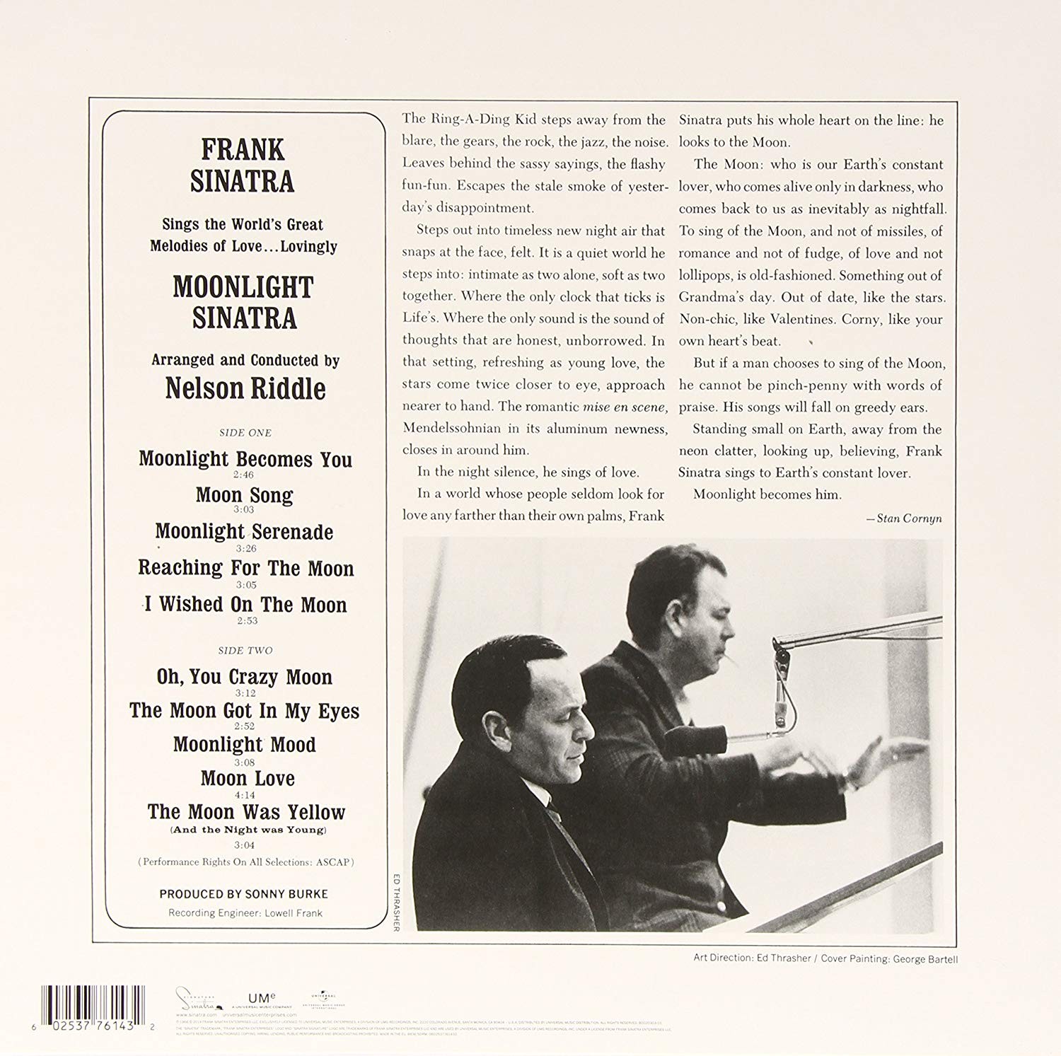 Artista(s) / Grupo: Frank Sinatra | Cantidad de Discos: 1 LP | Estilo(s): Jazz, Vocal, Pop | Título: Moonlight Sinatra | Sub-Categorías: Jazz | Artista(s) / Grupo: Frank Sinatra | Cantidad de Discos: 1 LP | Estilo(s): Jazz, Vocal, Pop | Título: Moonlight Sinatra | Sub-Categorías: Jazz