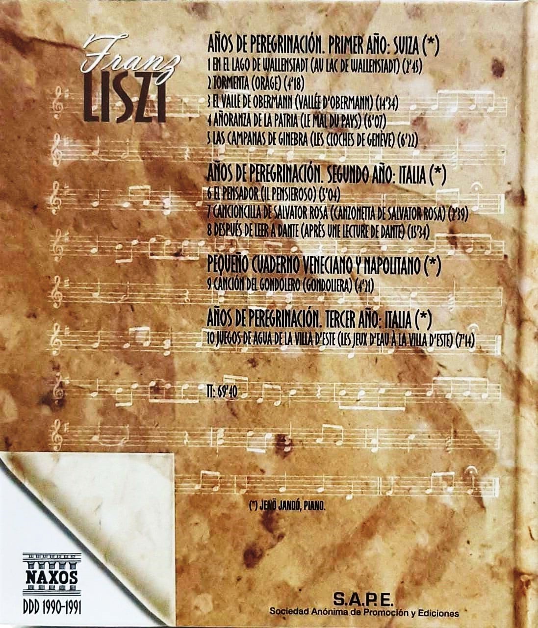 FRANZ LISZT – AÑOS DE PEREGRINACION SUIZA – ITALIA – PEQUEÑO CUADERNO VENECIANO Y NAPOLITANO