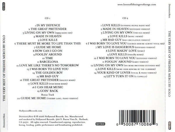 | 1-1 | Freddie Mercury– | In My Defence (2000 Remix) | 3:55 |