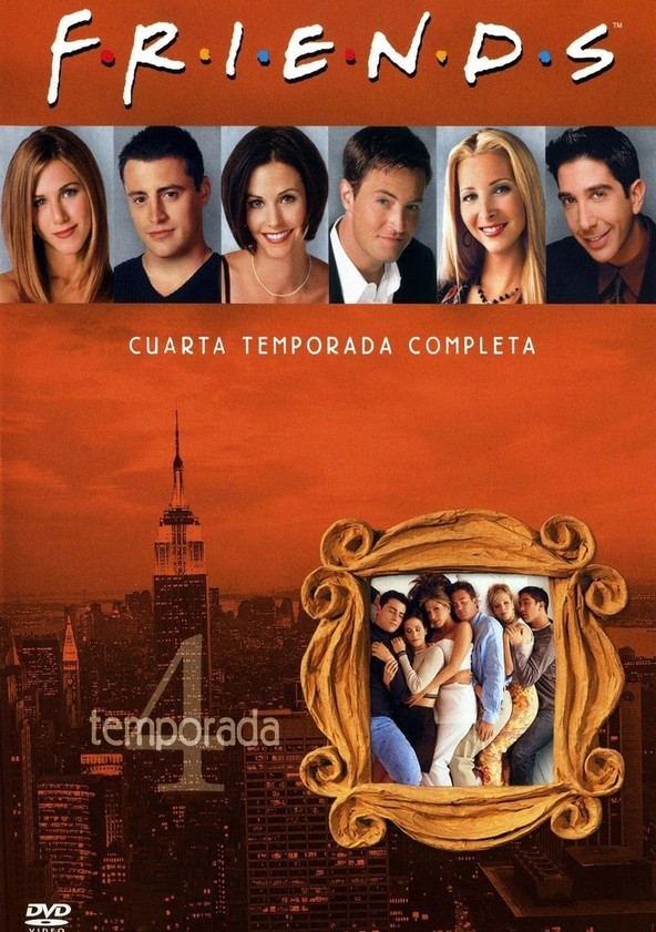 Cantidad de Discos: 4 | Lanzamiento: 1997 | Género(s): Serie de TV, Comedia | Audio: Inglés (Dobly Digital 5,1) | SubtÃtulos: Español, Inglés | TÃtulo: Amigos – Season 4 | Reparto: Jennifer Aniston, Courteney Cox, Lisa Kudrow, Matt LeBlanc, Matthew Perry, David Schwimmer, James Michael Tyler, Elliott Gould, Paul Rudd, Giovanni Ribisi, Tom Selleck, Hank Azaria, Bruce Willis, Michael Rapaport, Christina Pickles, Maggie Wheeler, Jane Sibbett, Helen Baxendale, Jessica Hecht, June Gable, Jon Favreau, Elle MacPherson, Anna Faris, Cole Sprouse, Bonnie Somerville, Aisha Tyler, Eddie Cahill, Lauren Tom, Larry Hankin, Amanda Carlin, Steven Eckholdt, Paget Brewster, Mitchell Whitfield, Debra Jo Rupp, Alec Baldwin, Christina Applegate, Jon Lovitz, Dermot Mulroney, Sean Penn, Teri Garr, Tate Donovan, Mike Hagerty, Steve Ireland, Ron Leibman, Alexandra Holden, Cynthia Mann, Kim Harris, Laura Dean, Cosimo Fusco, Jessica Wake, Alison La Placa, Adam Goldberg, Christine Taylor, Dina Meyer, Morgan Fairchild, Kathleen Turn