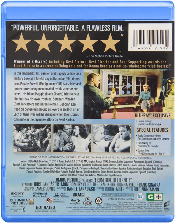 Reparto: Burt Lancaster, Montgomery Clift, Deborah Kerr, Frank Sinatra, Donna Reed, Ernest Borgnine, Jack Warden, Philip Ober, Mickey Shaughnessy, Harry Bellaver, John Dennis, Merle Travis