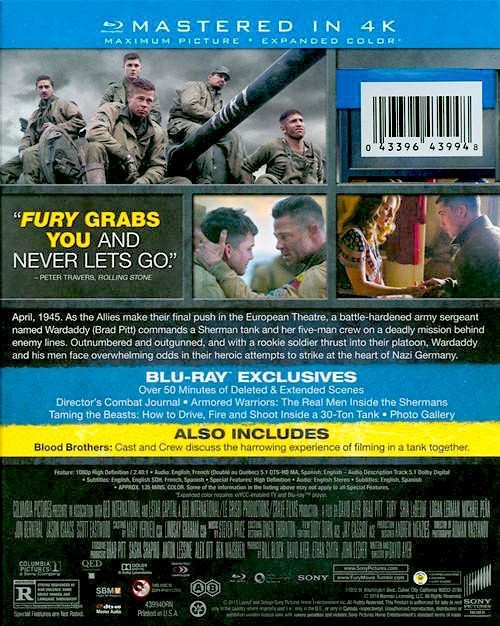Reparto: Brad Pitt, Logan Lerman, Shia LaBeouf, Jon Bernthal, Michael Peña, Jason Isaacs, Xavier Samuel, Scott Eastwood, Branko Tomovic, Adam Ganne, Jim Parrack, Laurence Spellman, Brad William Henke, Kevin Vance, Anamaria Marinca, Alicia von Rittberg, Daniel Betts, Stella Stocker