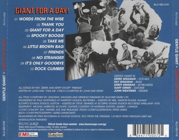 Artista(s) / Grupo: Gentle Giant | Cantidad de Discos: 1 | Lanzamiento: 2009 | Género(s): Rock | Estilo(s): Hard Rock, Pop Rock | TÃtulo: Giant For A Day! | Artista(s) / Grupo: Gentle Giant | Cantidad de Discos: 1 | Lanzamiento: 2009 | Género(s): Rock | Estilo(s): Hard Rock, Pop Rock | TÃtulo: Giant For A Day!